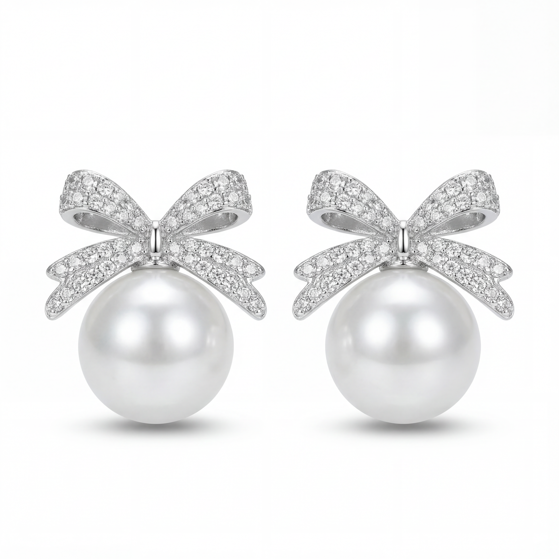 Delicate, graceful, and effortlessly chic — these Seyvora bow stud earrings bring a touch of timeless elegance to any look. The shimmering zircon bow sits beautifully on the ear, while a smooth pearl drop adds a soft, luxurious finish. Perfect for daily wear, special events, or gifting, this pair elevates every outfit with a blend of sparkle and sophistication.